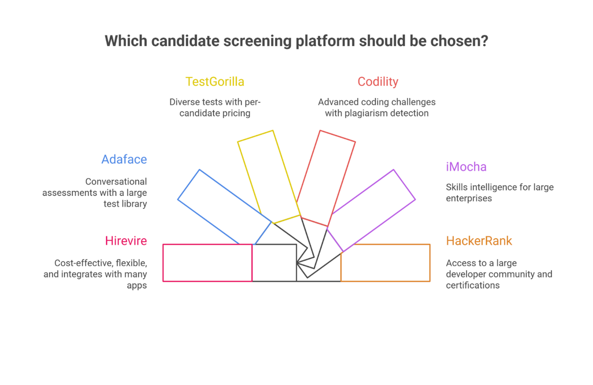 Role Types: Technical roles suit Adaface, Codility, or HackerRank. Mixed roles work with Hirevire, TestGorilla, or iMocha. Non-technical roles benefit from video screening (Hirevire, Xobin).