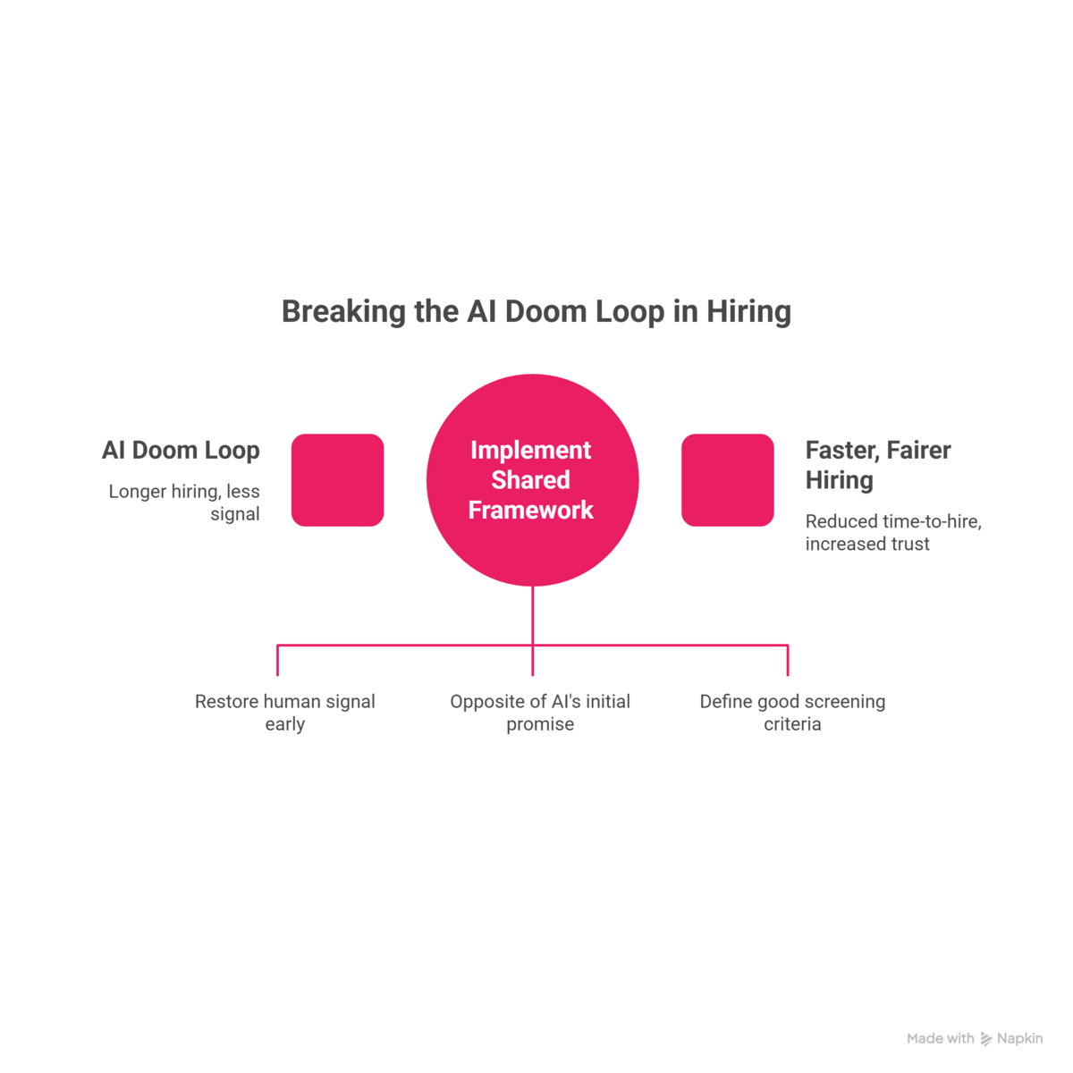 The doom loop is not a niche problem for a few companies that implemented AI poorly. It is the default outcome when AI is deployed on both sides of the hiring transaction without a shared framework for what good screening actually looks like.