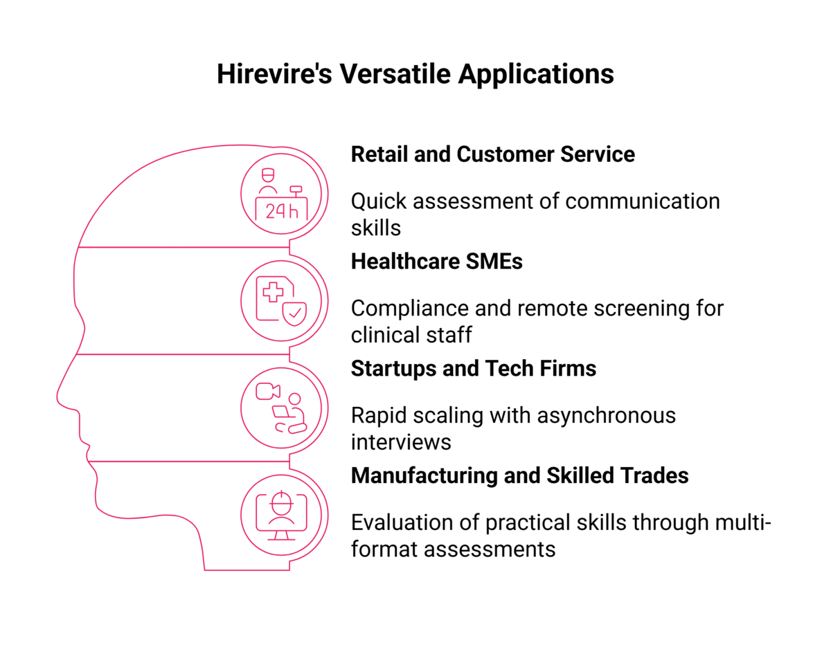 From drastically reducing screening time to improving candidate quality, Hirevire delivers tangible ROI by cutting recruitment costs and minimizing turnover risks. Real-world applications in industries like retail, healthcare, startups, and manufacturing showcase how Hirevire's flexibility and user-friendly design solve common recruitment pain points.