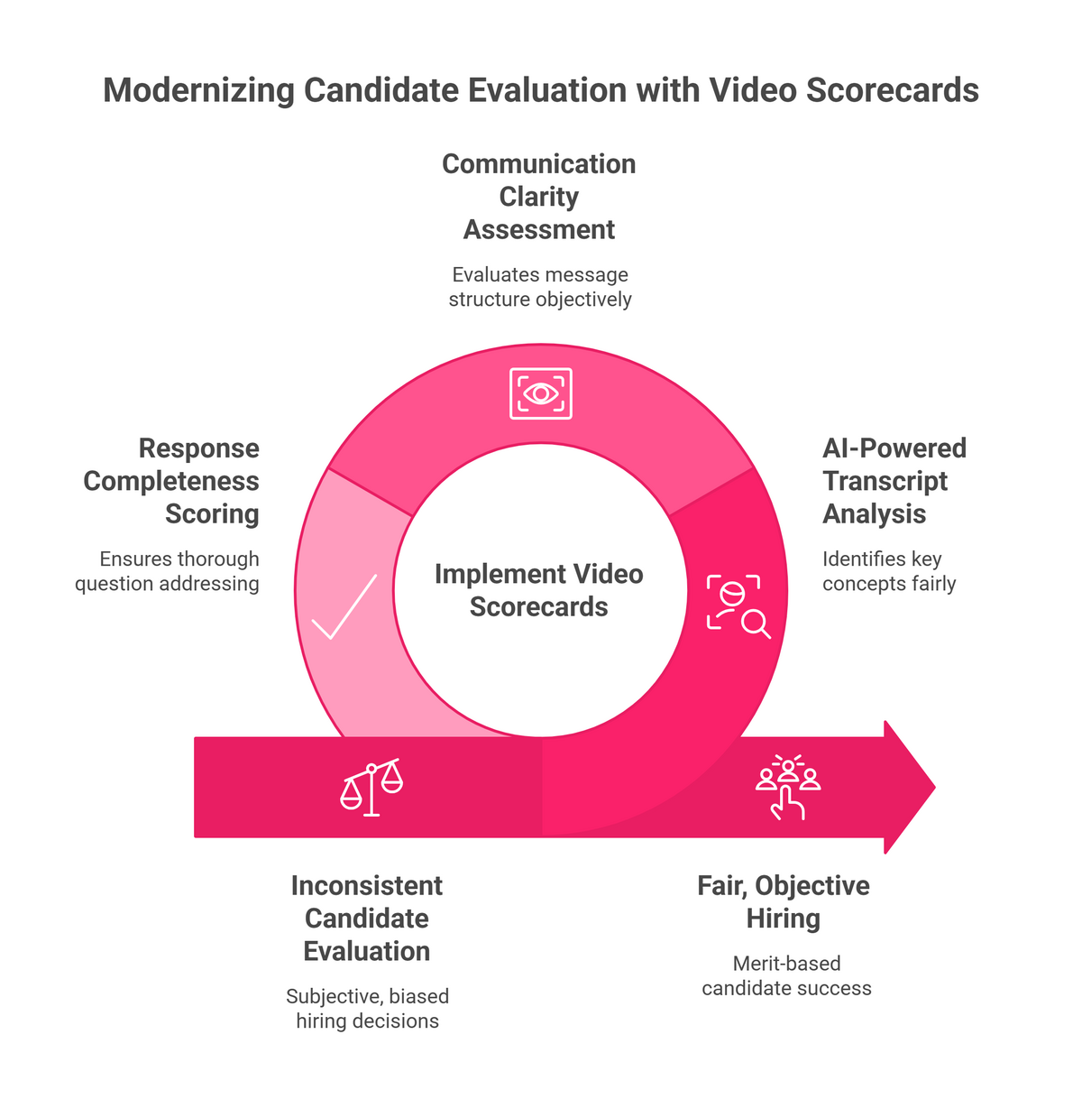Platforms like Hirevire have recognized this gap, developing specialized evaluation frameworks designed specifically for asynchronous video responses. These systems go beyond traditional scorecards by incorporating: