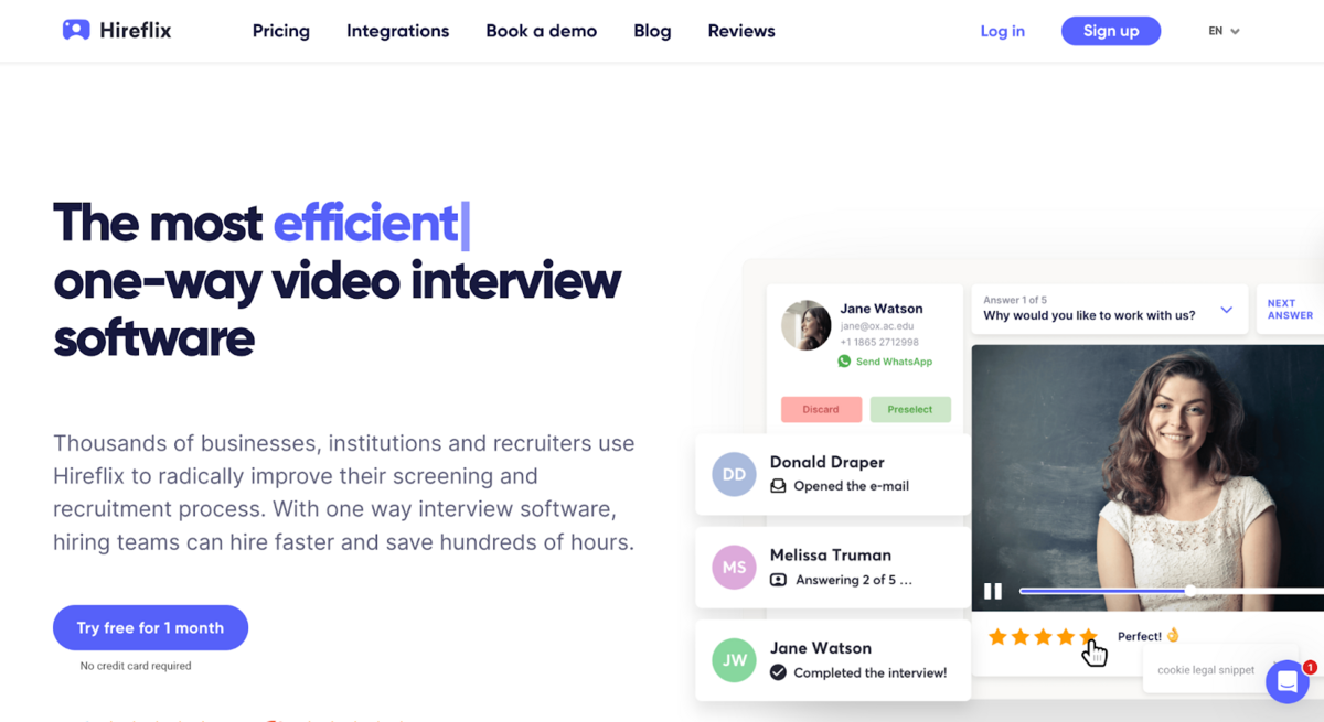 - For budget-conscious teams: Hireflix provides streamlined video interviewing at a more accessible price point