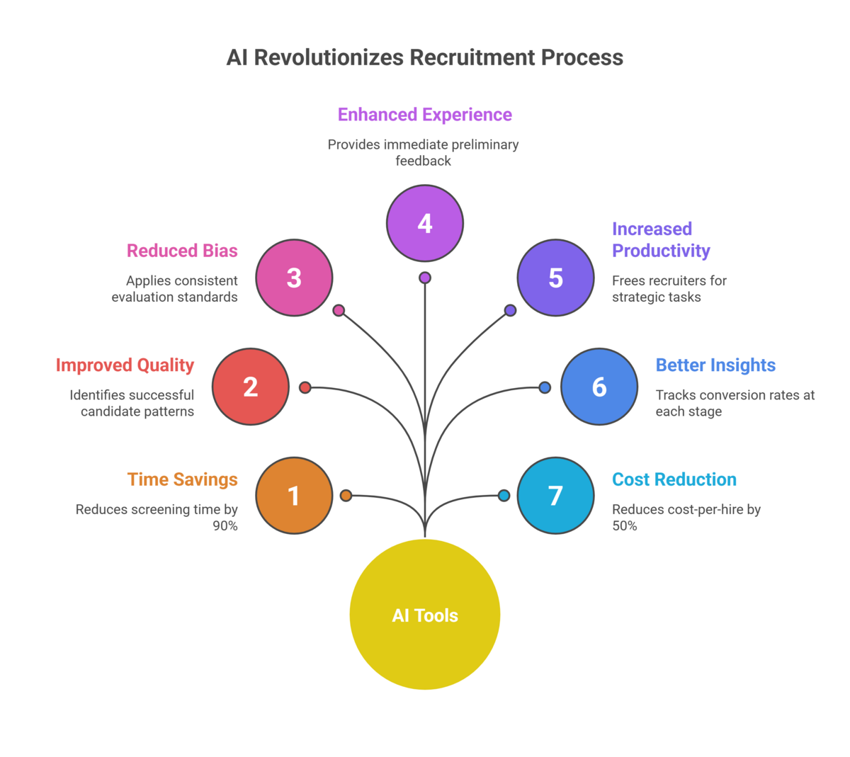 Increased Recruiter Productivity: AI handles repetitive tasks, freeing recruiters for relationship building, conducting in-depth conversations, and strategic activities like employer branding and workforce planning.