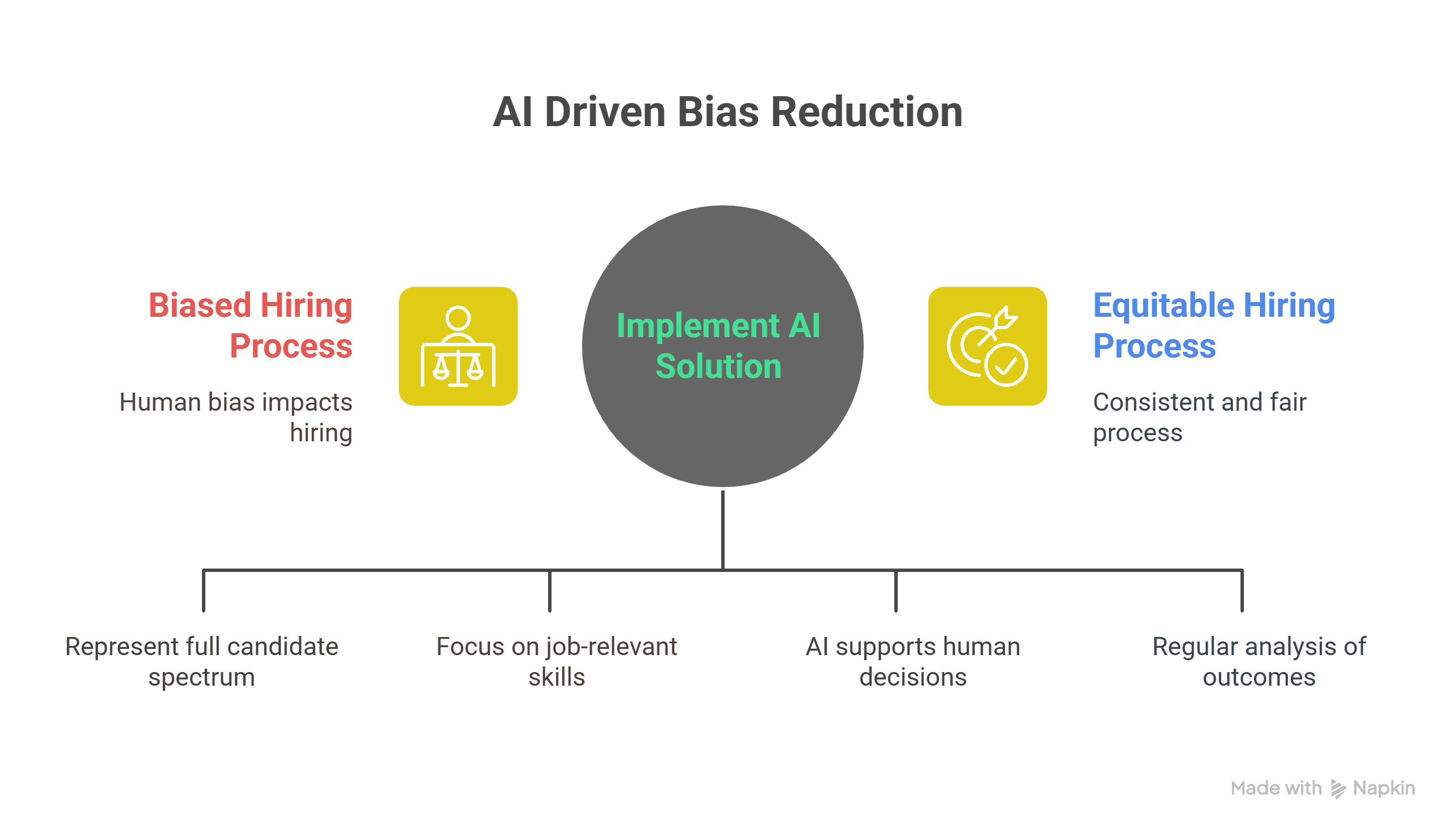 Provide bias awareness training that helps team members understand how AI can reduce unconscious bias while remaining vigilant about potential algorithmic biases. Establish clear protocols for when human oversight should override AI recommendations.