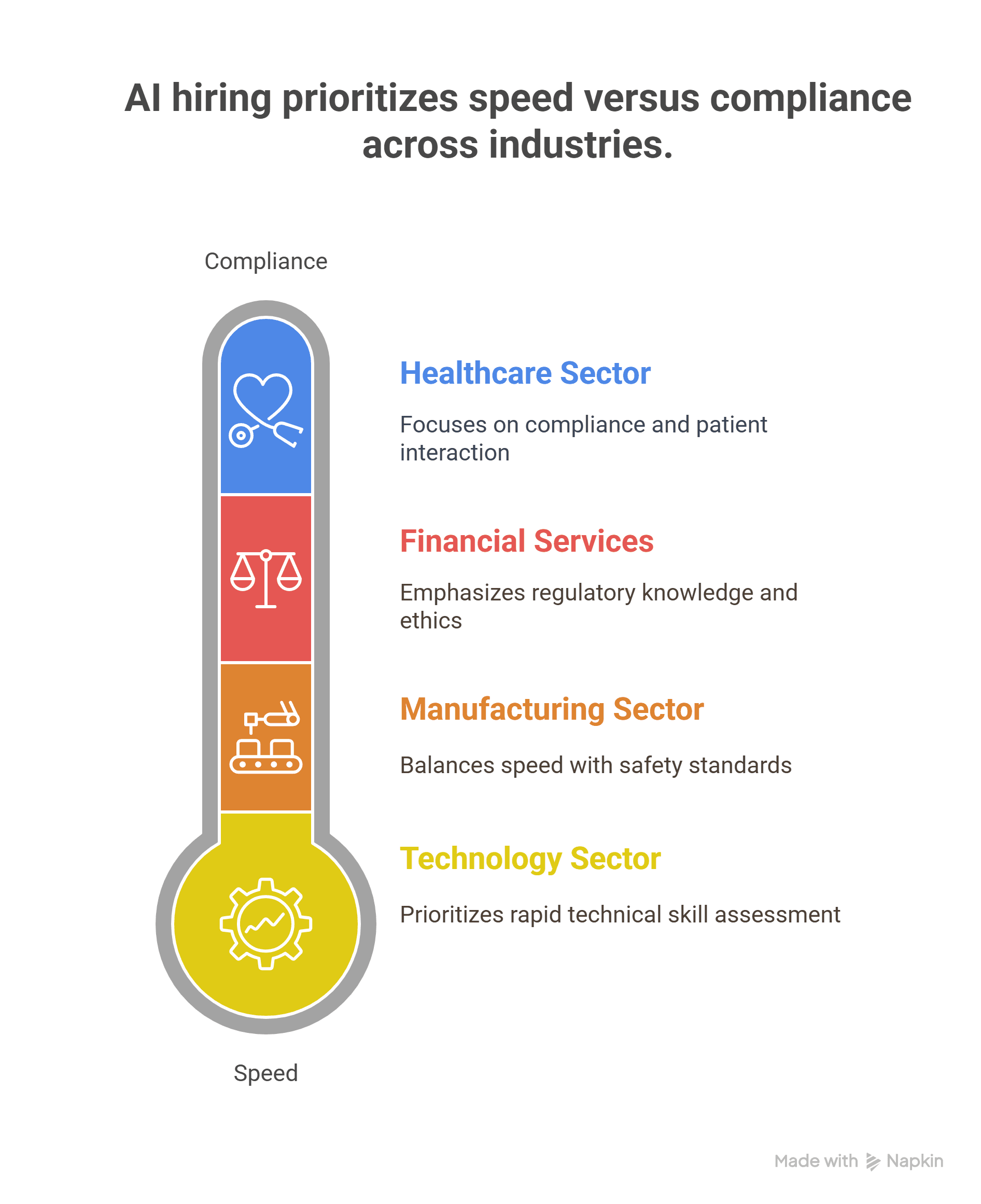 The key to successful AI hiring lies in recognizing that while the technology is consistent, its application must be tailored to industry requirements, regulatory environments, and cultural expectations specific to each sector.