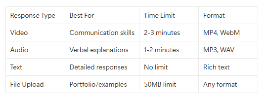 - Include video or audio responses