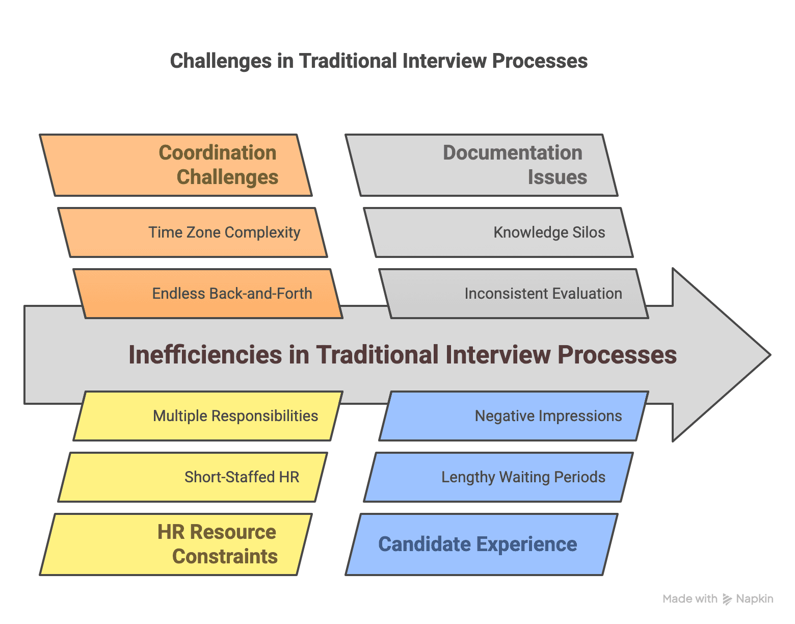 The traditional interview process presents a clear conflict: organizations want to thoroughly evaluate candidates, but the coordination required creates significant inefficiencies. This tension points toward the need for a fundamentally different approach—one where technology alleviates these pain points while enhancing the quality of candidate assessment.