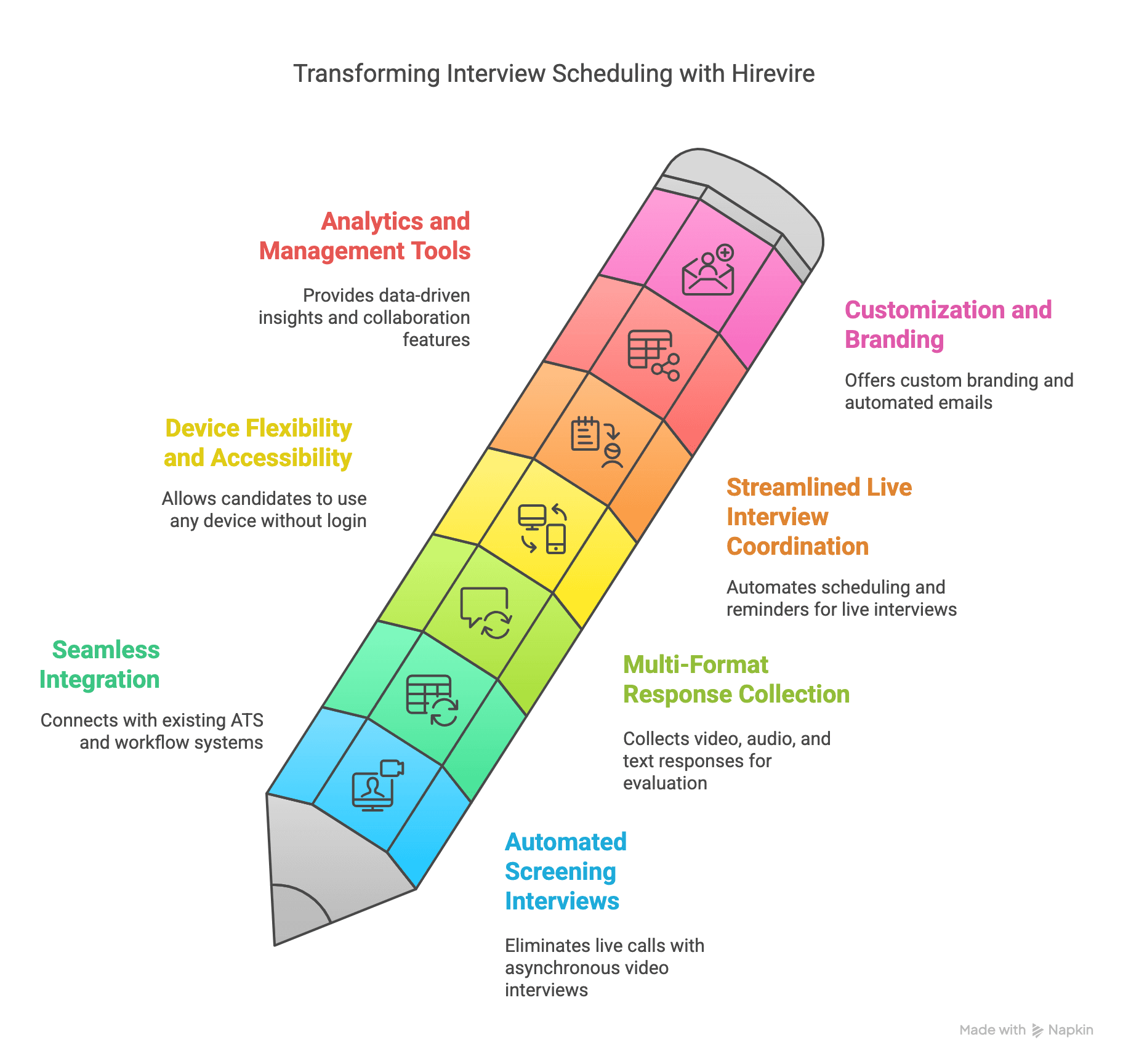 Take the first step toward transforming your recruitment process today by exploring how Hirevire can eliminate your scheduling bottleneck while enhancing your candidate evaluation quality. Your future hires—and your recruitment team—will thank you.