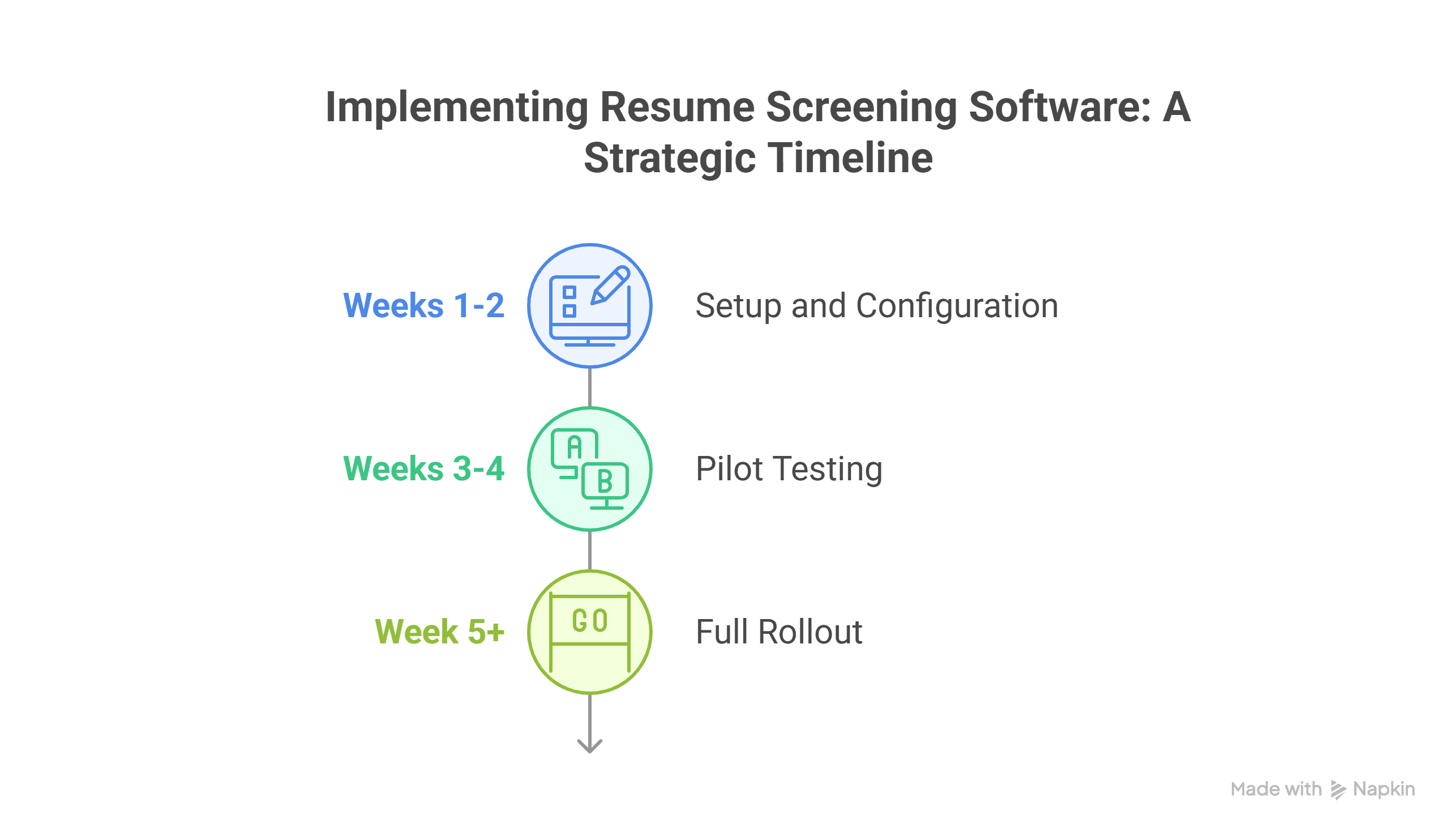 Team Training and Onboarding Schedule platform training sessions for all users, create internal documentation and best practices, establish review processes for screening results, and set up candidate communication templates.