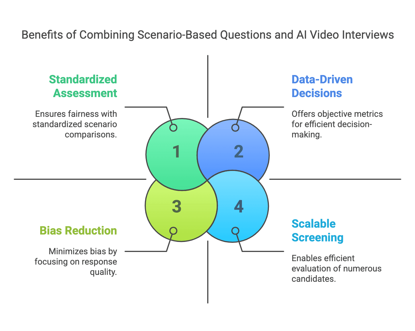 The integration of scenario-based questions with AI video interview technology represents a significant advancement in recruitment practices. This approach delivers measurable benefits: