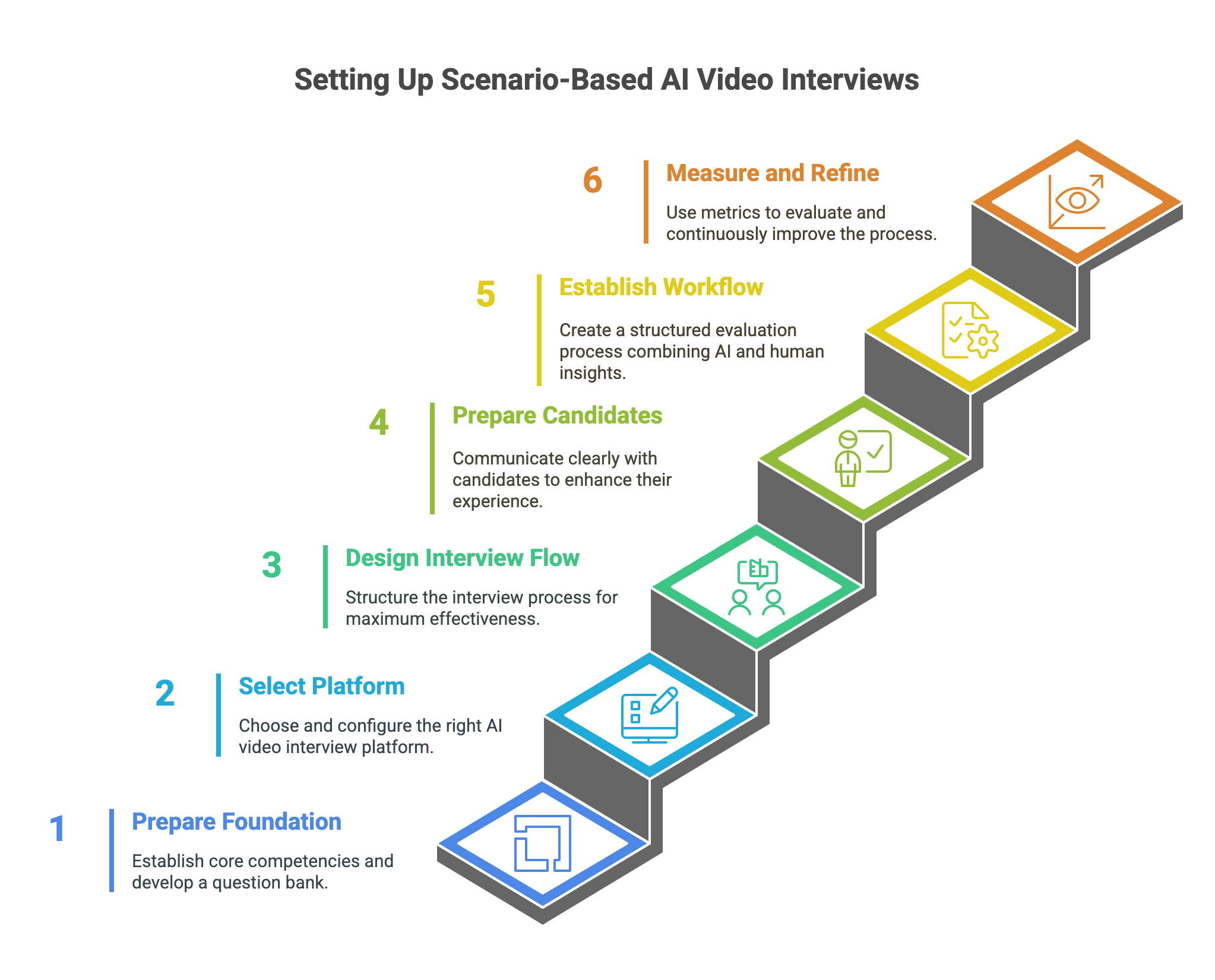 Most successful implementations use scenario-based AI video interviews as a powerful screening tool that enhances rather than replaces final live interviews. This approach: