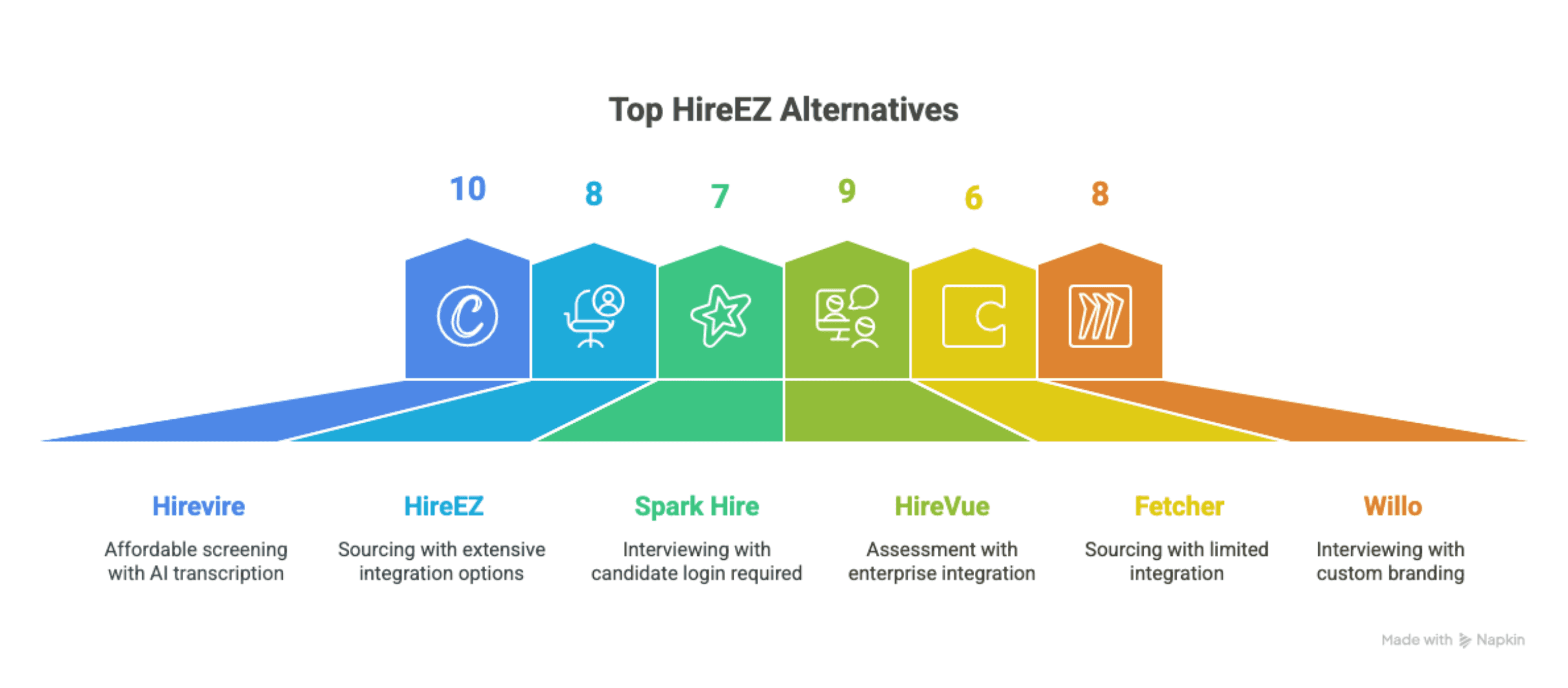 HireEZ and its alternatives address distinct recruitment challenges. While HireEZ excels at candidate sourcing and market intelligence, platforms like Hirevire transform the screening and evaluation process. Understanding your specific pain points is crucial for selecting the right solution.