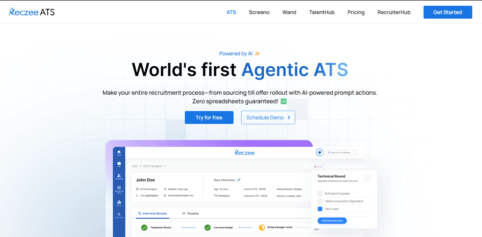 | Reczee ATS | AI, automation, analytics | Custom | AI-driven, fast hiring | Newer, limited reviews | "Speeds up hiring, seamless experience." |