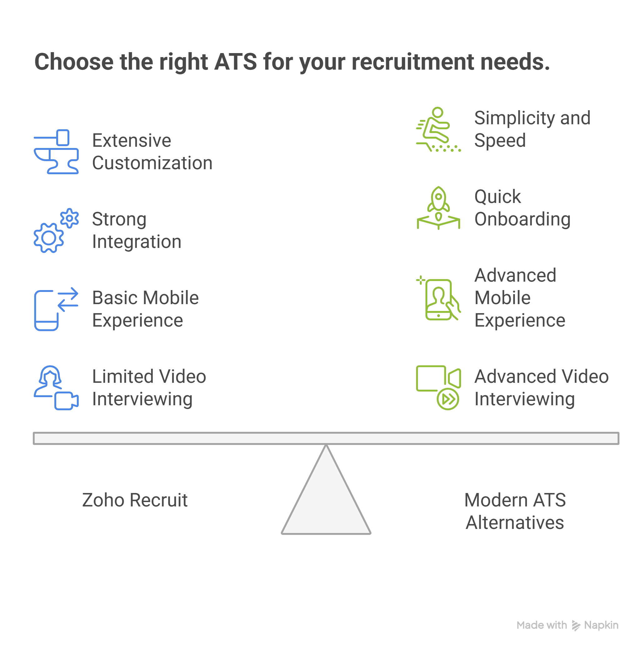- Use case complexity - Simple hiring needs may not justify the learning curve