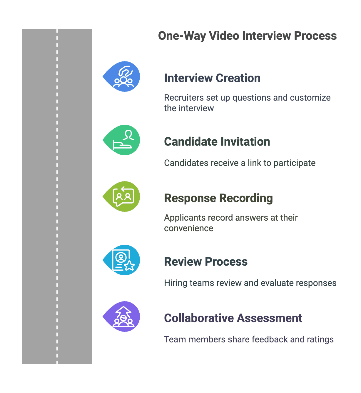 - Review Process: Hiring teams review and evaluate responses on their own schedule