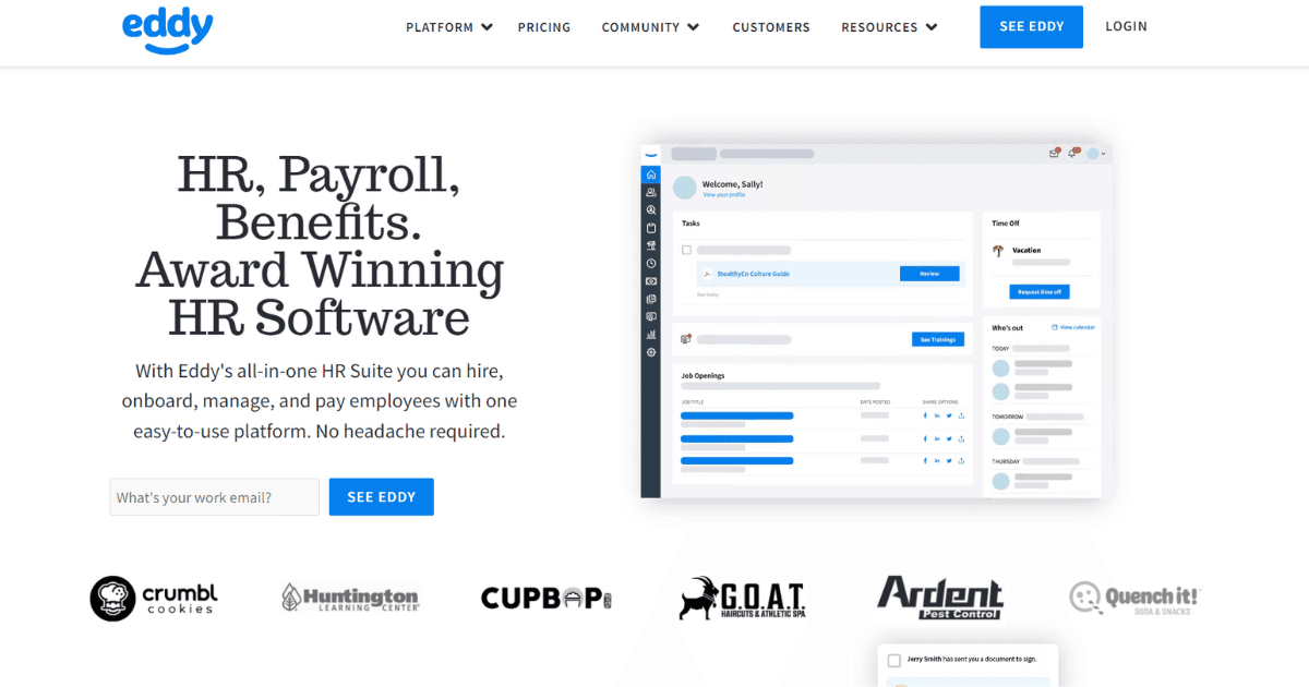 Eddy is easy to use and affordable, making it a great option for small businesses that are looking to streamline their HR processes.