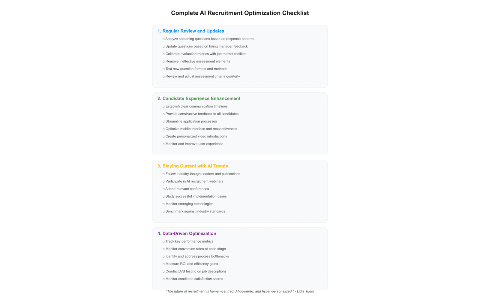 Consider Unilever's transformation: they successfully automated their initial screening process for 250,000 applications, saving 70,000 hours of interviewing time while improving candidate experience. This demonstrates how AI recruitment can scale effectively while maintaining quality.