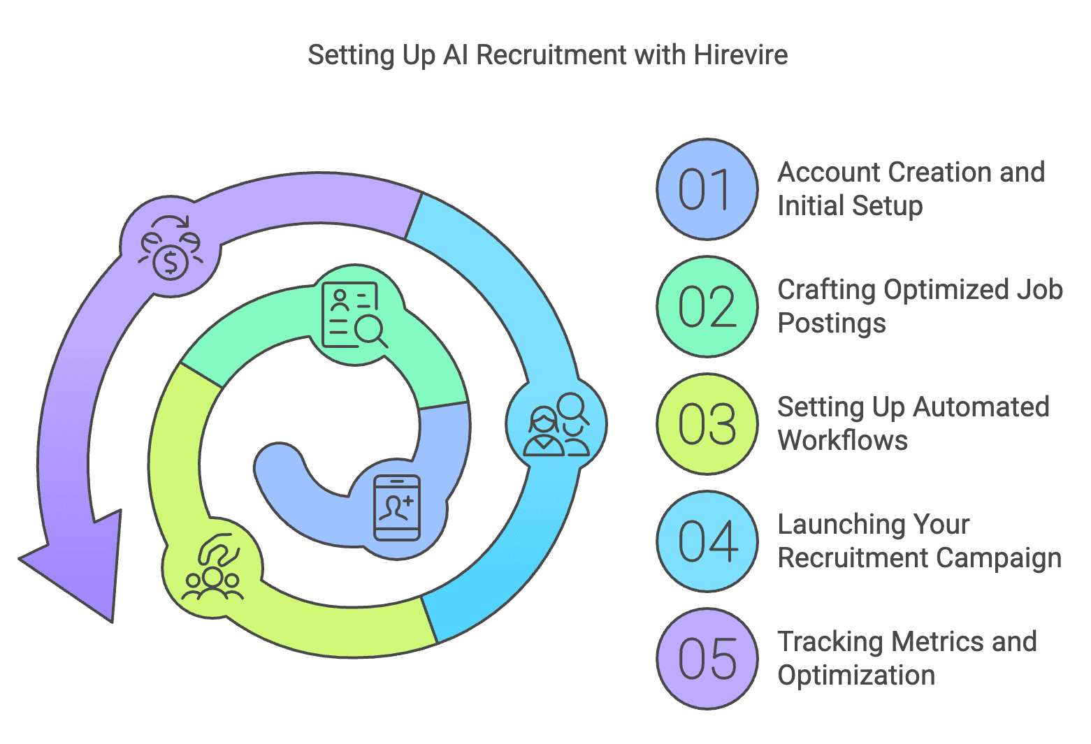 Successfully implementing AI recruitment requires a systematic approach. This comprehensive guide breaks down the process into five manageable steps, ensuring a smooth transition to AI-powered hiring using Hirevire.