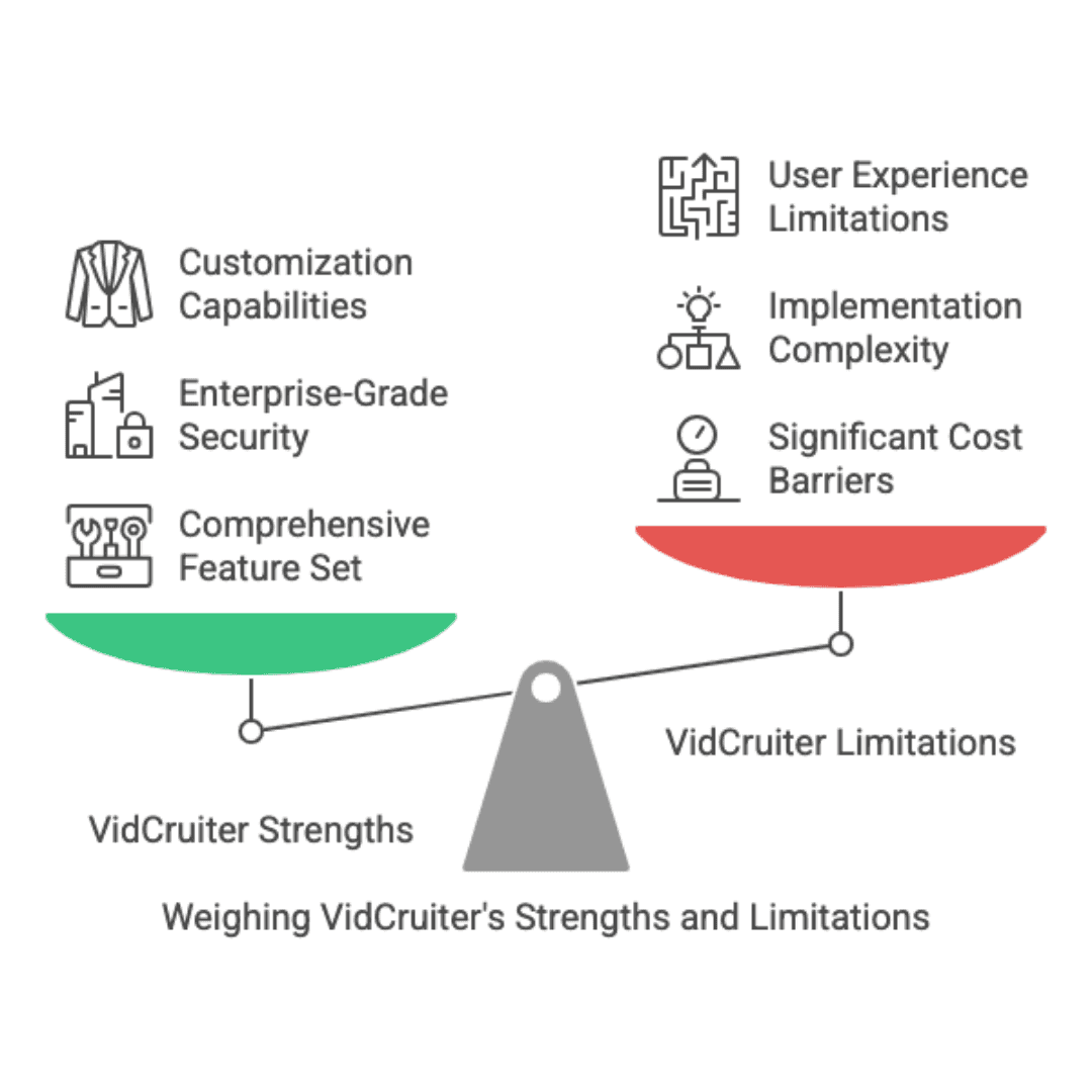 VidCruiter's infrastructure is built to handle enterprise-level demands, with particular attention to security compliance and data protection—features that are especially important for its government and healthcare clients but come with corresponding complexity in implementation and cost structures.