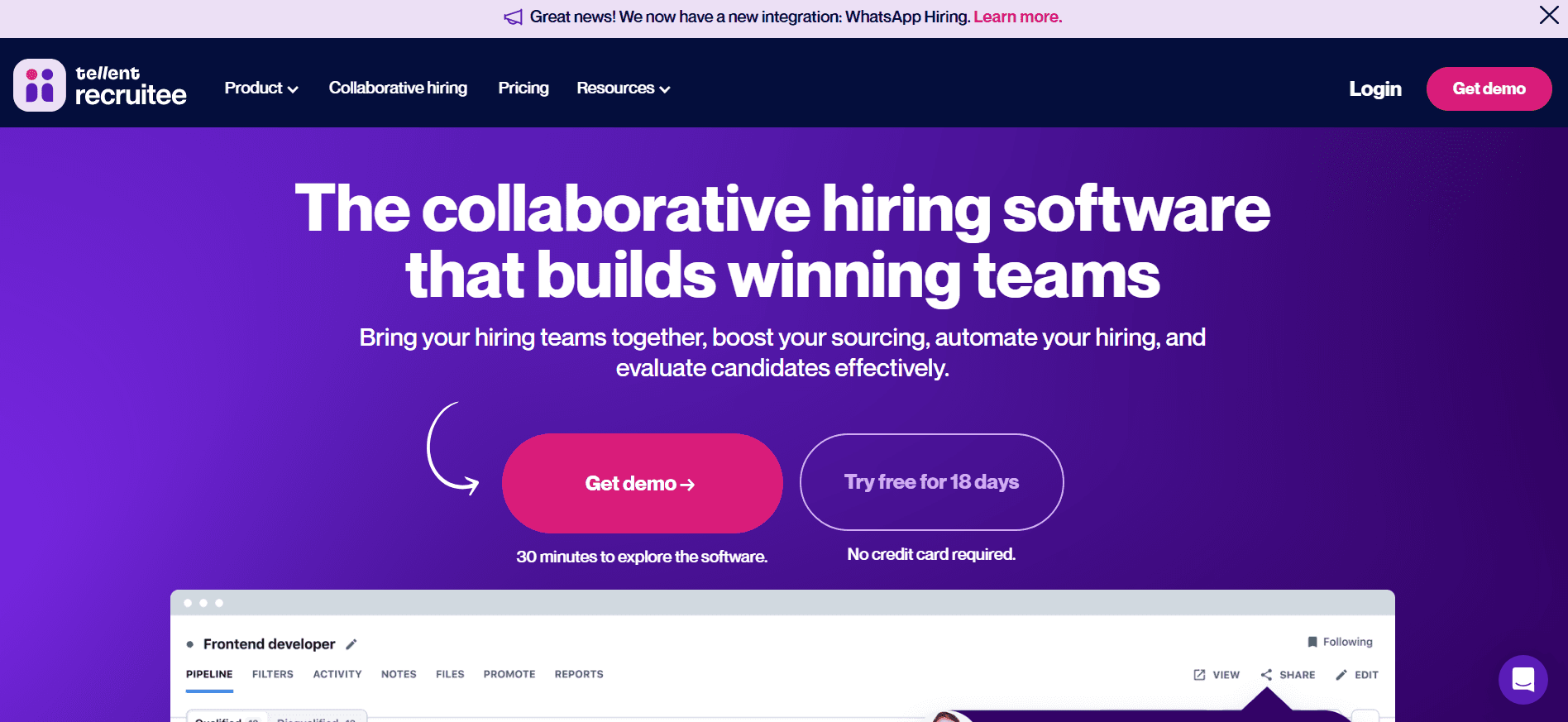 - Recruitee: Whatsapp Hiring and employer branding focus