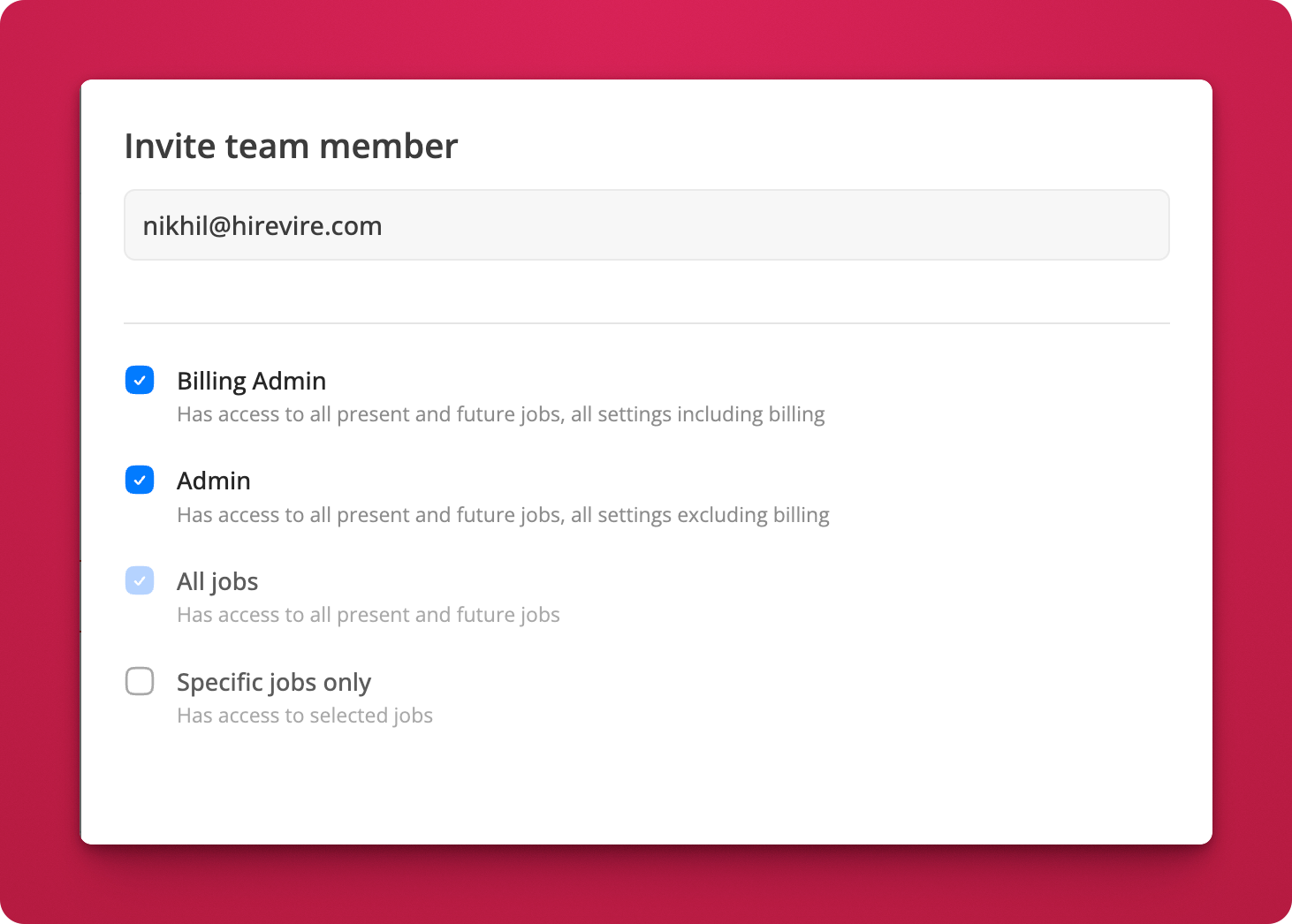 Hirevire now supports two team member access levels so you can give teammates the access they need without making everyone the account owner.